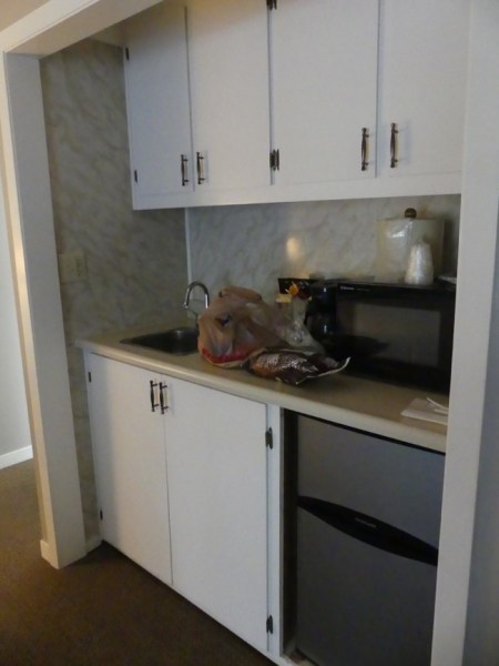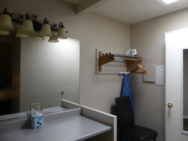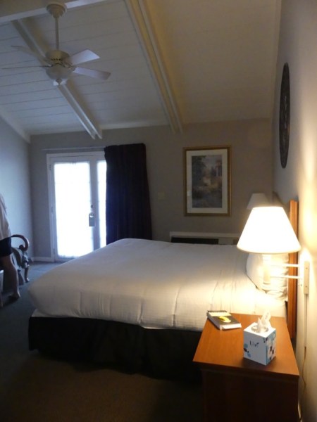 It was another case of not wanting to mention to AdventureMan that it might be a bit tricky getting up there, but although there is still a lot of snow, we didn’t have any problems on the roads. And, even though the parking lot, we are told, is full, AdventureMan, with his famous great luck, waited while I checked us in, and while he was waiting a beautiful parking spot opened up right in front of the Lodge. Woo HOOOOO!