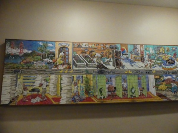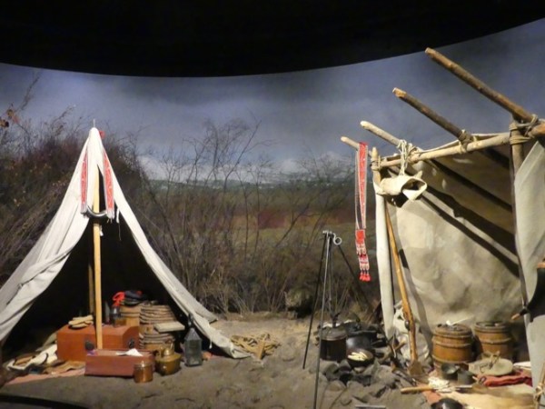 That is not a real salmon jumping up a river to spawn, but another gorgeous piece of art work at the entrance to this museum. I am loving this place already. They’ve put some big bucks into making this a high end product.