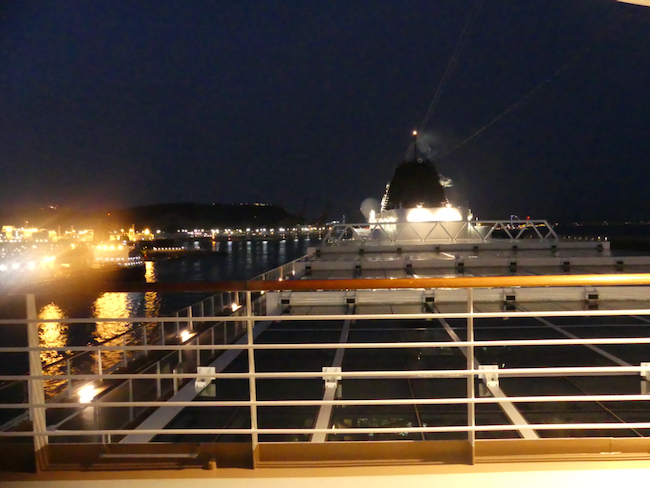 Ah well. Small drama. We put on our swimsuits and head for the spa. As we soak in the waves and bubbles for the last time, we review the trip and think how lucky we are. We never had any serious rain, only maybe ten minutes in Malta. No big deal. And all the ports gave us what we needed – new sights, new experiences, new understanding of how the world works. We love our cabin, our stewards have treated us like royalty, and we’ve met some interesting people and some nice people. This has been a really good trip for us.