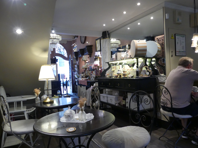 We find a table at a corner cafe where we can have a coffee and watch the world go by. A group of four elegant elderly French women settle in front of us, with great red lipstick.