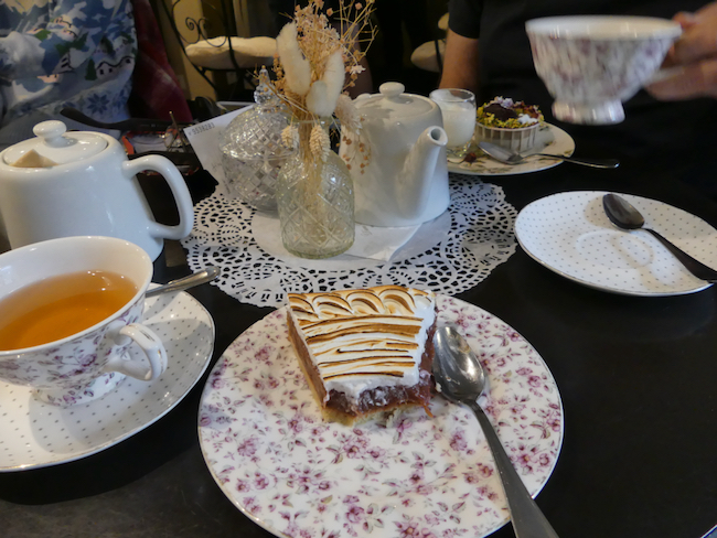 We watch the groups go by; our guides come into the cafe and tell us that the youth are having a photo scavenger hunt inside the Rouen Cathedral. We are delighted to think they are having so much fun and we are happy to be drinking good tea here.