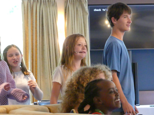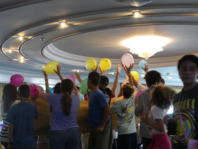 Todays competitions are hilarious! A race with an egg in a spoon held in your mouth! Successfully hoola-hooping, and racing around the lounge. Stacking your team shoes. Who can wrap the best mummy? The youth go at it with focused enthusiasm – they want to win! Kamel expertly corrals the excited, yelling, screaming parents.