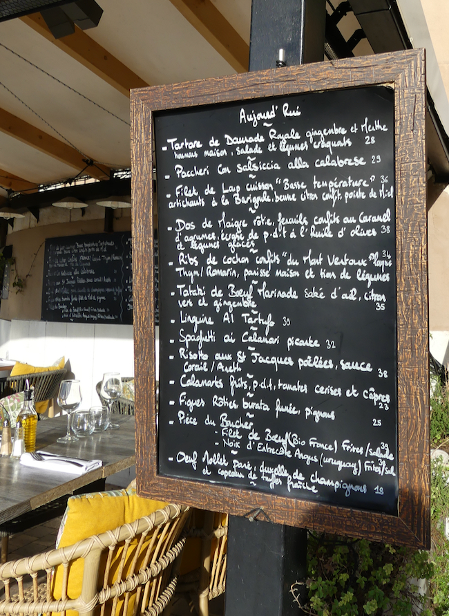 We are hungry, and we wanted to eat in Ajaccio. We find a place that looks promising, there is a local man sleeping with a glass of brandy in his hand and a dog on his lap. We take that as a promising sign. Here is another promising sign: