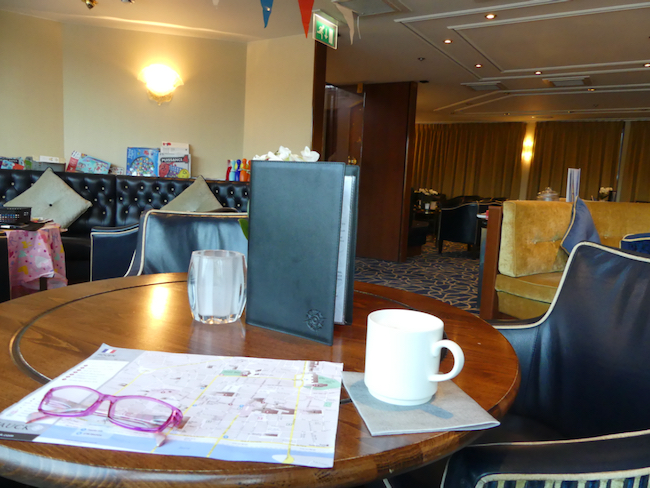 We gather in the lounge after our bags are packed and left in the hallway to be picked up. The good thing is that we can see the bags in the desk area, so we know they are tagged and will be safely delivered to our transportation.