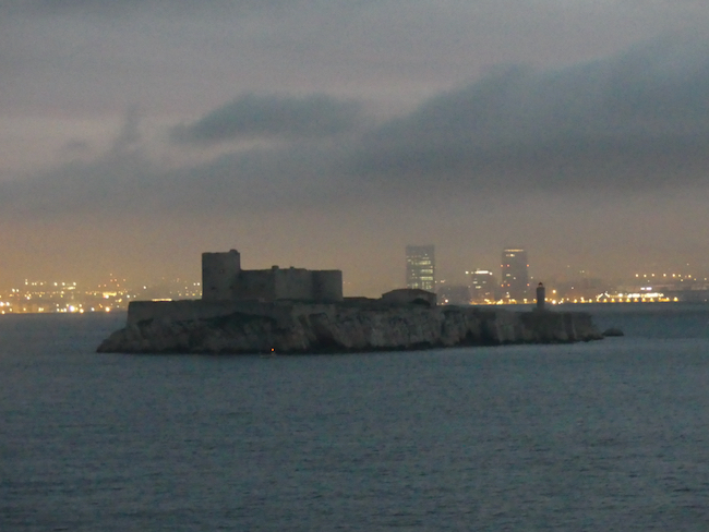 It is very early morning as we approach Marseilles, so early the sun has not begun to rise. The infamous Chateau d’If, made famous in Dumas’ Count of Monte Cristo looms in the semi-darkness.