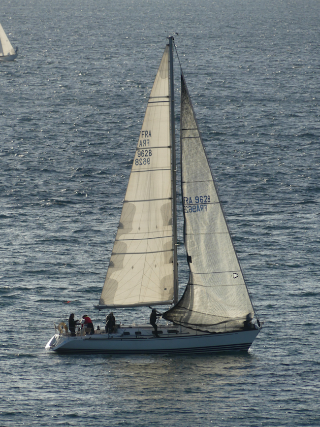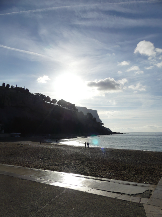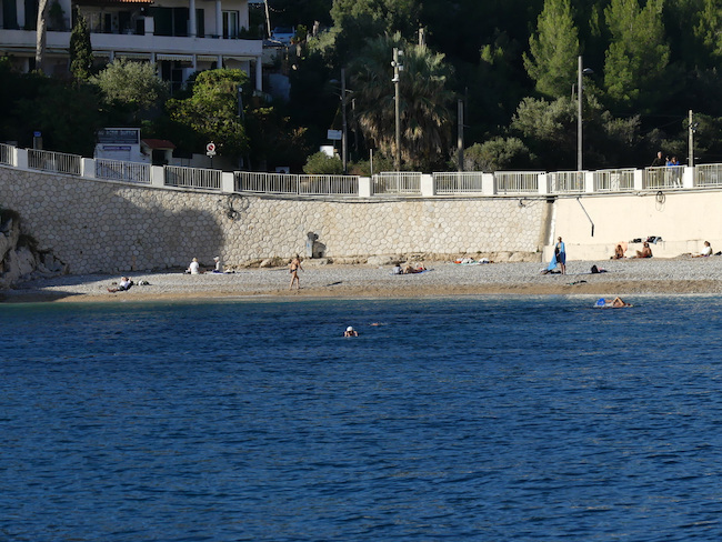 At the beach in Cassis: “In the town, I wear clothes.” LOL it is forbidden to walk around nude or in a bathing suit.