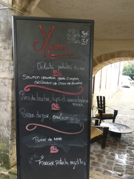 Lots of happy meals available in Bleye citadel. The menu of the day, tuna tartine (a savory upside down pie?), slab of salmon with creamy risotto and chocolate cake with a pear sauce and chocolate wafer all for around $25, really, not bad for a tourist location.
