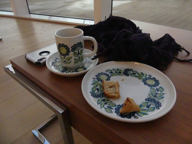 My guilty pleasure, a thin slice of Norwegian breakfast bread with an almond cream filling.