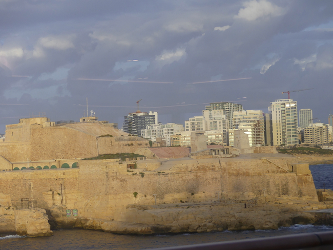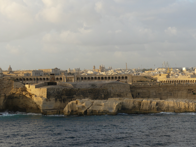 We are coming in between Fort Saint Elmo and Fort Ricasoli and heading towards the Valetta Waterfront (you can see them on the map above, if you care.)