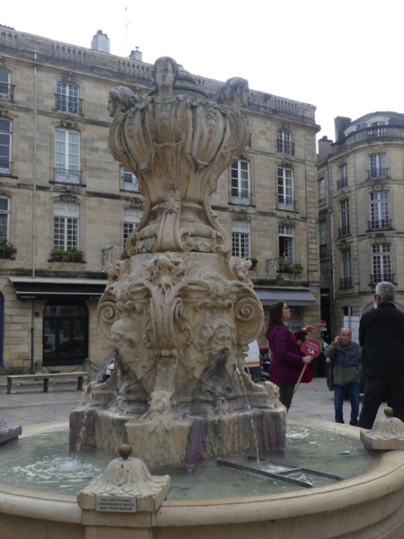What there are not a lot of, in France, are tourist restrooms. As we got off the bus for our Walking tour, I told AdventureMan to go ahead, I had spotted a McDonalds, and I know that the McDonalds always has a restroom. I even know where it is, because this McDonalds in downtown Bordeaux is just like the one in Metz, France, near where we used to live. So I quickly went up to the third floor, only to discover the door to the restroom was locked. An interesting woman asked what I needed, and I said “to use the restroom” (yes! I can speak French when I need to!) and she unlocked it for me. I thanked her, used the restroom and zipped out to catch up with my group. Did not see the group, but AdventureMan was waiting at a corner saying “hurry! hurry!” and got me quickly back into the group.