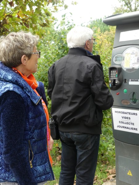 I am showing you this photo, which I took with their permission, to show you the problem with French parking systems. Every one is different! Even the French are flummoxed! We all had a good laugh about how it takes a village – or a mind-hive – to figure out how they work.