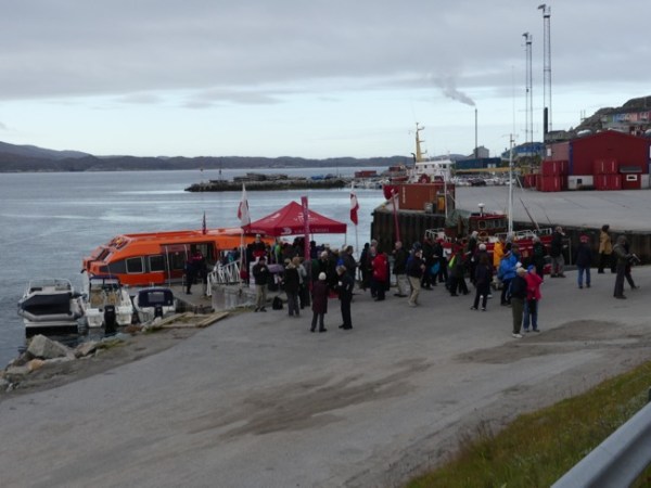 When I say early, we are in the third group to leave, and our departure is scheduled for 7:45 A.M. Fortunately, we have gained another hour – love this traveling west by ship – and most of us are up and ready long before our tender time is called. We have to make the most of this early morning call, as the boat is scheduled to start on it’s long leg to L’anse aux Meadows, in Newfoundland, Canada. We will be at sea all afternoon, overnight, all day tomorrow, and tomorrow night. This is a great time to get off and WALK!
