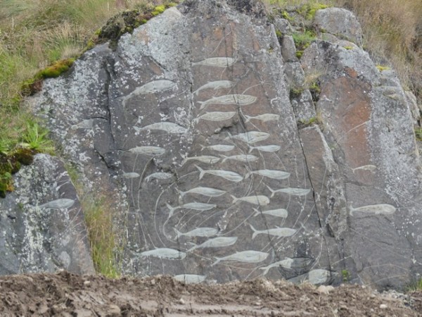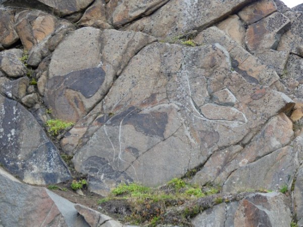 Here’s the one I like the best, but it is the hardest to see. It is a whale, maybe a hump-back whale. Can you see its shadowy outline? Part of the rock is incorporated in the whale design: