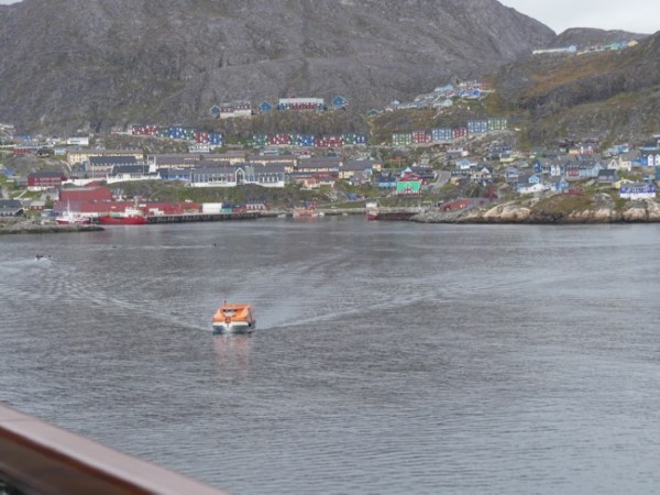 The day dawns calm and beautiful, and the tenders are in the water early, waiting to take us to Qaqortoq. We are eager for so many reasons. We want to get off the boat and walk. We want to set foot in Greenland. And even before we had a grandson whose name begins with a Q, we have loved living in Qatar, begins with a Q, and then in Kuwait, shortened in text-talk to Q8. We look for Q’s, we delight in Q’s.