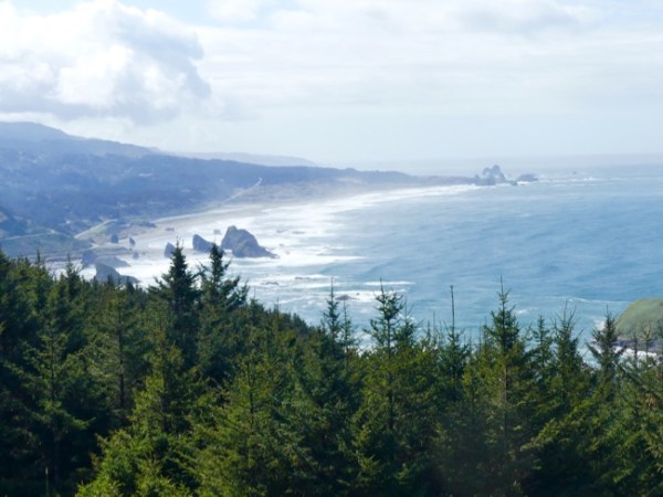 But on we went. I had taken over driving, and later, we just laughed. As soon as I got on the road, highway 101 changed to a narrow forest lane, with twists and turns, and impatient large lumber trucks coming up quickly behind me and riding my bumper. I think I mentioned before that the rental Nissan Altima drives like a beached whale. It was awful.