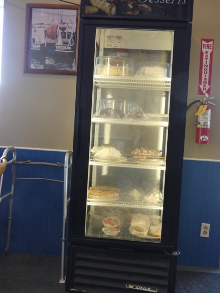 We ended up at a small restaurant just outside of Port Angeles. We would have eaten in Port Angeles, but every restaurant we saw was a chain restaurant, and we were on a detour and had concerns about staying close enough to the road we needed to be on. As we left Port Angeles, we found the Fairmount, the kind of place we love to try, a local place, full of people still eating breakfast, or drinking coffee, or eating pie, but mostly checking on the latest local news.