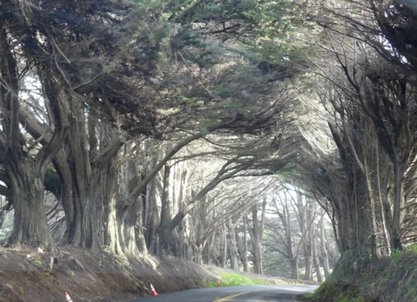Finally, things evened out for a short while and I asked AdventureMan if he would drive. Just as he started driving, we got to California 1, an even narrower forested road with steep twists and turns. It didn’t look that bad on the map, it looked like a short stretch, but that was deceptive, it went on forever. By the time we came out again along the coast, AdventureMan needed to stop and stretch and take a breath – it was a stressful road.