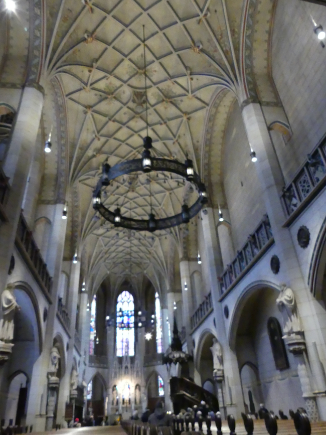 The town hall has numbered its windows like an Advent Calender, and they open to a different display with each day. We walked around the market – and then headed up to the cathedral on the top of the hill, a hike of several hundred steps uphill, with a few level areas where we could catch our breath as much younger hikers breezed past us. It’s humbling.