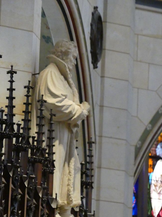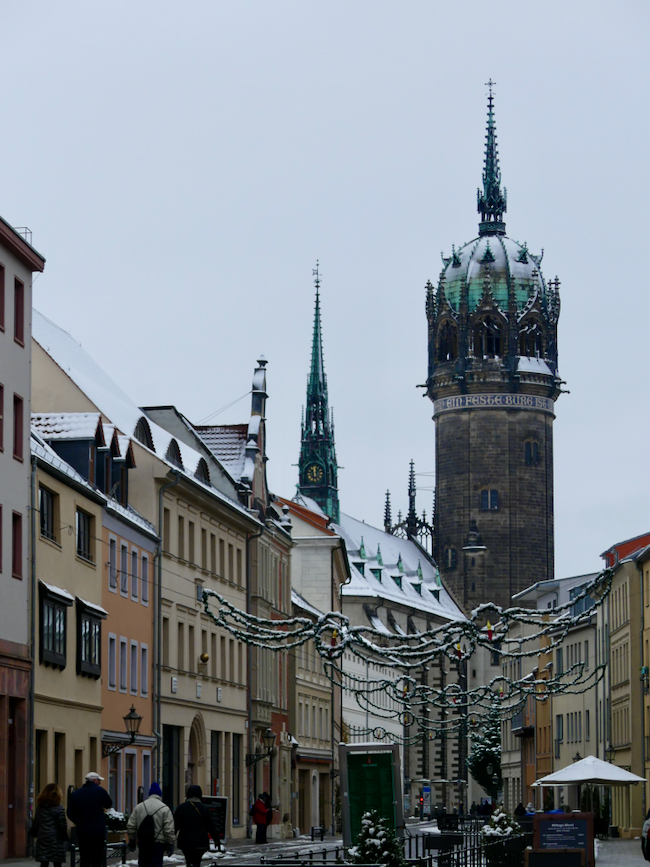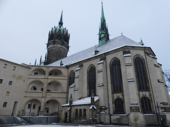 Off to Wittenberg, where our guide Christian takes us first to the old Catholic Church where Martin Luther posted his 95 theses, against practices of the Catholic Church which, according to his reading of scriptures, were just wrong and needed to be corrected. He did not intend to create a schism or a new religion. So here is the portal where there once was a door that is no more, burned in a fire, where Luther posted his 95 theses requesting correction of wrong-doings by the church.