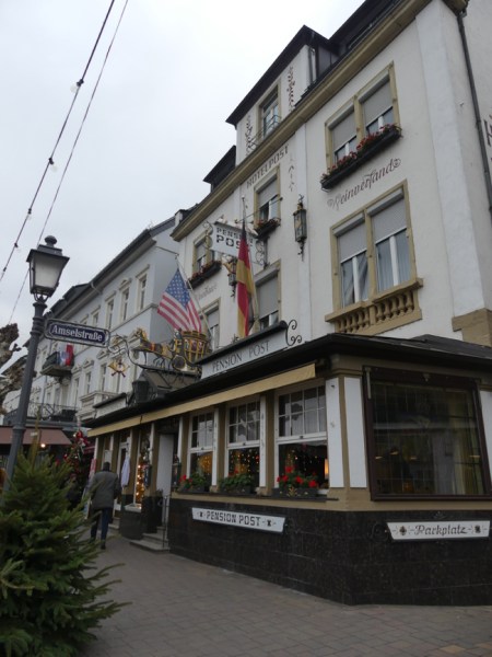 In the shop below, the Poste, I found a map of the Rhine River all the way from its beginning in the mountains in Switzerland all the way to its outlet near Amsterdam. I hid it from AdventureMan, knowing it would fit in his stocking. When it came time to wrap, I couldn’t find it and figured I had already wrapped it, but it didn’t show up. It was only months later I thought to check my suitcase, and there it was. It was fun for him to get it, even so late, and he is still having fun with it.