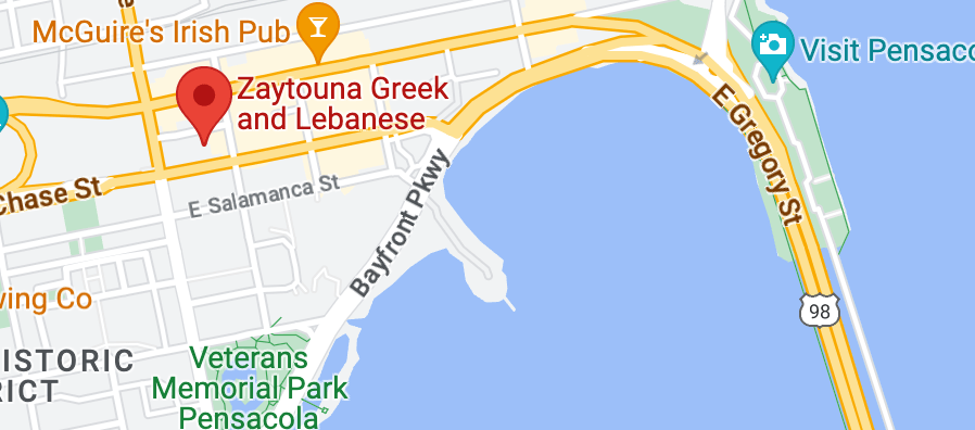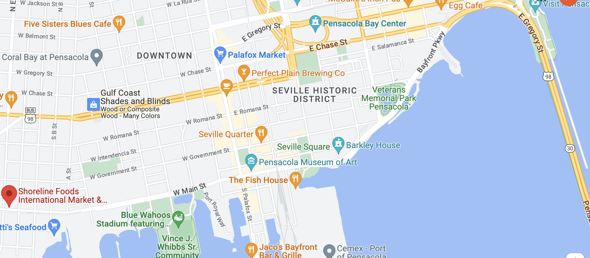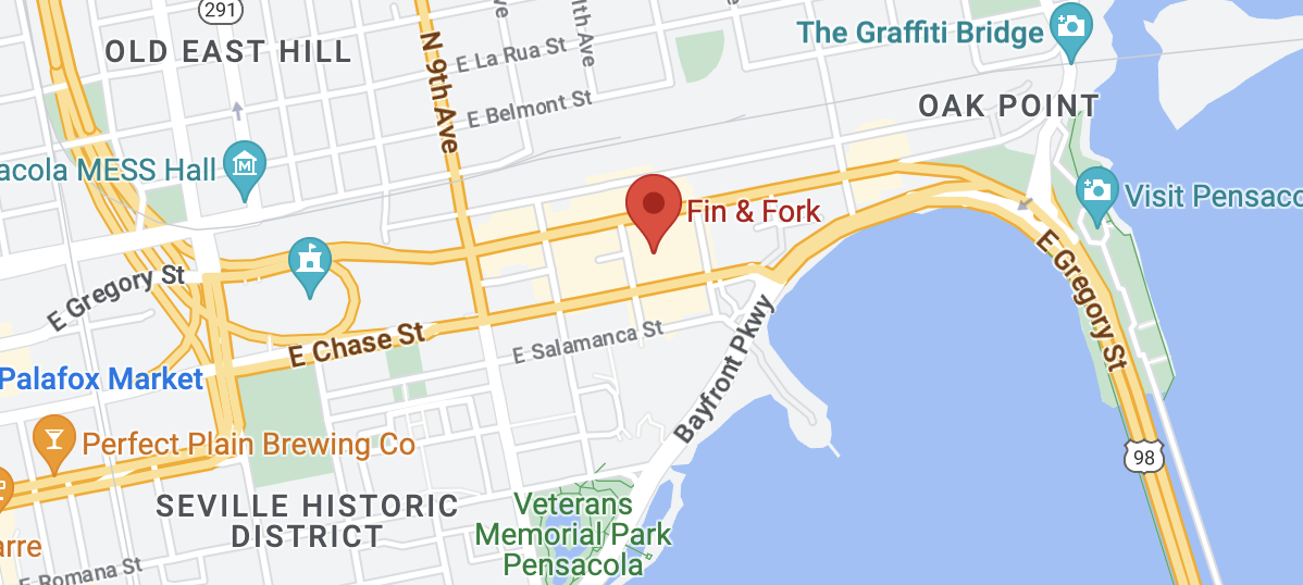 Also on the map above you will see Jaco’s, also good for seafood, and charcuterie, and is probably the best restaurant location in Pensacola. Outdoor seating is available and gives you time to spend with the gorgeous view. Jaco’s is a happening place. We love their salmon burgers.