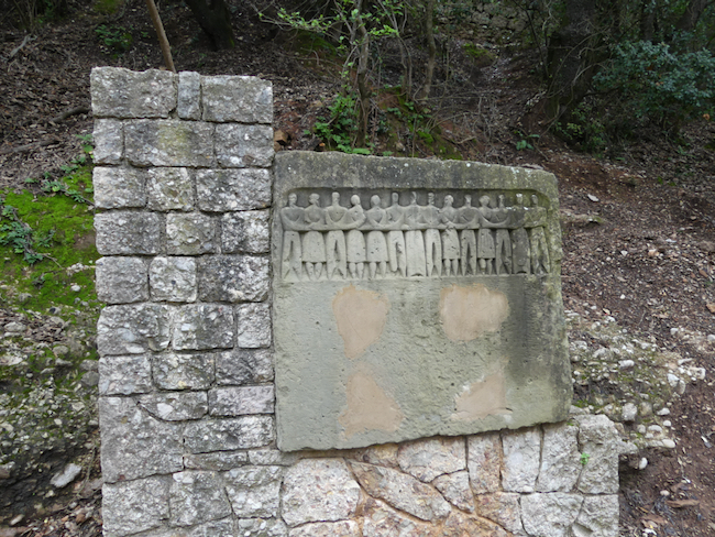 We get to Les Eyzies, and Font de Gaume way before it even opens, but we are far from the first ones there. They have benches with seat numbers on them, and we are close to the very end, like 48 and 49.