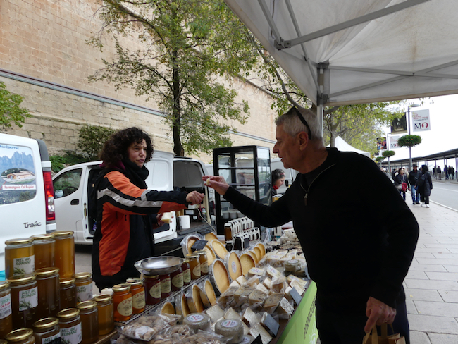 Did I mention the day our marriage survived a two and a half hour drive that ended up taking a whole day? Getting to St. Alvere was like that. I was navigating with Google, and we got on the tiniest, most remote roads. It took a long time to get to there. I never saw a truffle, but it was a gorgeous day, and a beautiful town, and indications that it, too, was on the pilgrimage route to San Diego Compostela.
