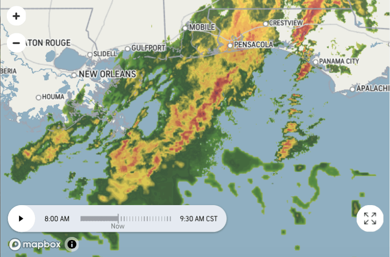 I’m not complaining. We have had weeks of beautiful weather – other than when the storms blew in. This early day squall is just that – a small thing. The forecast is that it will usher in freezing temperatures for tonight. The rain should quit by 2, when Pensacola folk start heading toward church services and family gatherings, and tonight and Christmas Day should be unseasonably cold.
