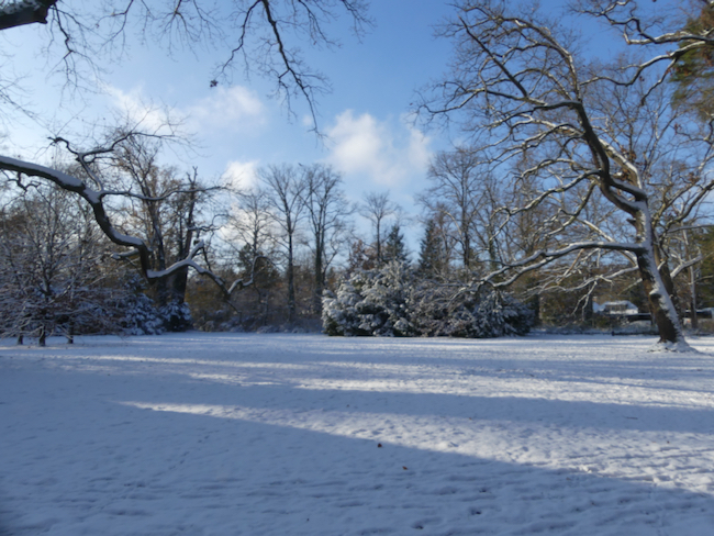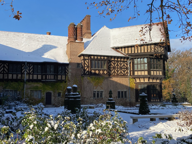 Then on to Cecilianhof, where the Potsdam Conference was held to negotiate the end of World War II. Lothar led the group on a tour outside the building, I walked around the other way, just in need of some quiet and some time by myself. The grounds were covered with snow, snow weighted down the boughs of the trees and coated the bushes – it was beautiful.