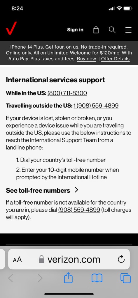 We have received notification that our international plan with Verizon is in place, and we are good to go with calls and messages and data for the trip. It is a little expensive, but every time we travel, we have had an issue of some kind come up, and then, such coverage is priceless. During this trip we had to make calls about a dental emergency and a suspected credit card fraud, so having this plan in place was worth every penny.