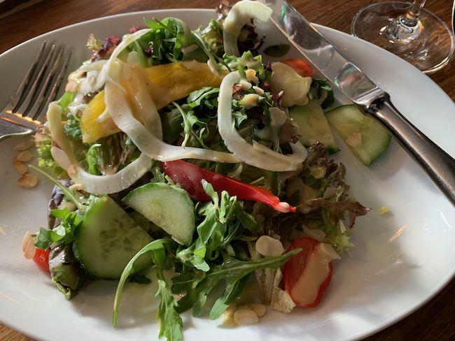 With some confusion, she went away, came back with the corrected bill – and told the people at the next table that there had been some confusion, and we had received their meal. We apologized profusely, and we were all laughing. They asked the waitress to please hurry the same meal to them and we had a great conversation, as we waited, them asking us if it had been a good meal and us assuring them it had been delicious. So much goodwill. They didn’t hate us for eating their lunch!