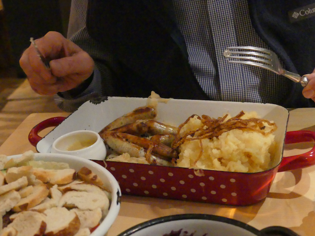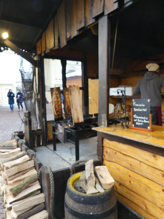 Above is planked salmon. We saw it once before, four years ago at the Strasbourg Christmas Market, but rarely since then.