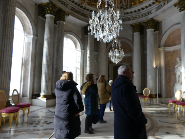 Here is where I realized a big mistake. I was planning a walk through Sans Souci Palace, and rather than wear my wonderful but clunky walking shoes, I was wearing my tights – and sandals. It’s a palace, right? To get to the palace, we walked about half a kilometer on ice with a thin coating of snow. My feet were not cold, but my sandals were not good at gripping, and it was slippery. I made it, with feet just a little damp. No big deal, we also walked in the snow once we got to Sans Souci, and I was not the only one who had made a bad call on footwear. We all survived. From this day on, however, I wore my clunky walking shoes, which have miraculously sticky soles.