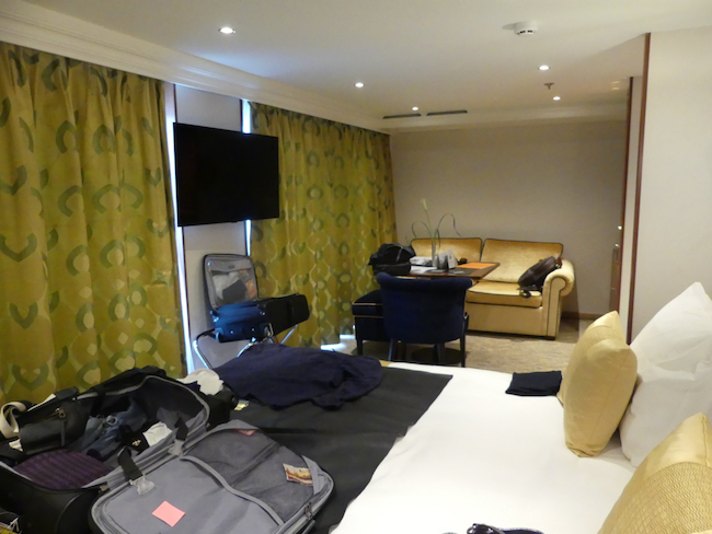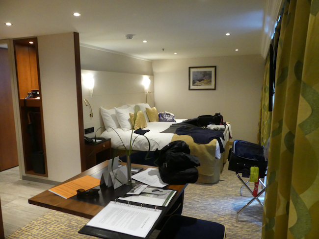 The curtains are closed because we are tied up next to another ship, AND because it is still really hot in Paris. And yes, it is temporarily chaotic while we get our clothes hung in the closet and our bags stowed, have a little patience!