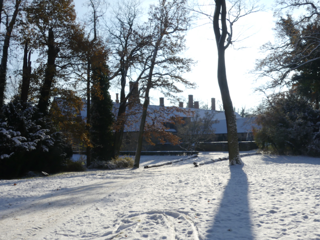 Then on to Cecilianhof, where the Potsdam Conference was held to negotiate the end of World War II. Lothar led the group on a tour outside the building, I walked around the other way, just in need of some quiet and some time by myself. The grounds were covered with snow, snow weighted down the boughs of the trees and coated the bushes – it was beautiful.