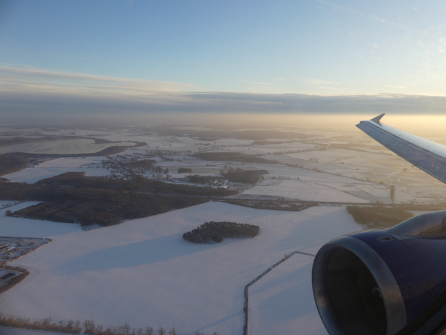 Getting through Charles De Gaulle was a miracle. Now, magic continues to happen as we near Berlin and see the ground covered with snow. The pilot tells us this is not normal for this early in the season, but oh, it IS beautiful!