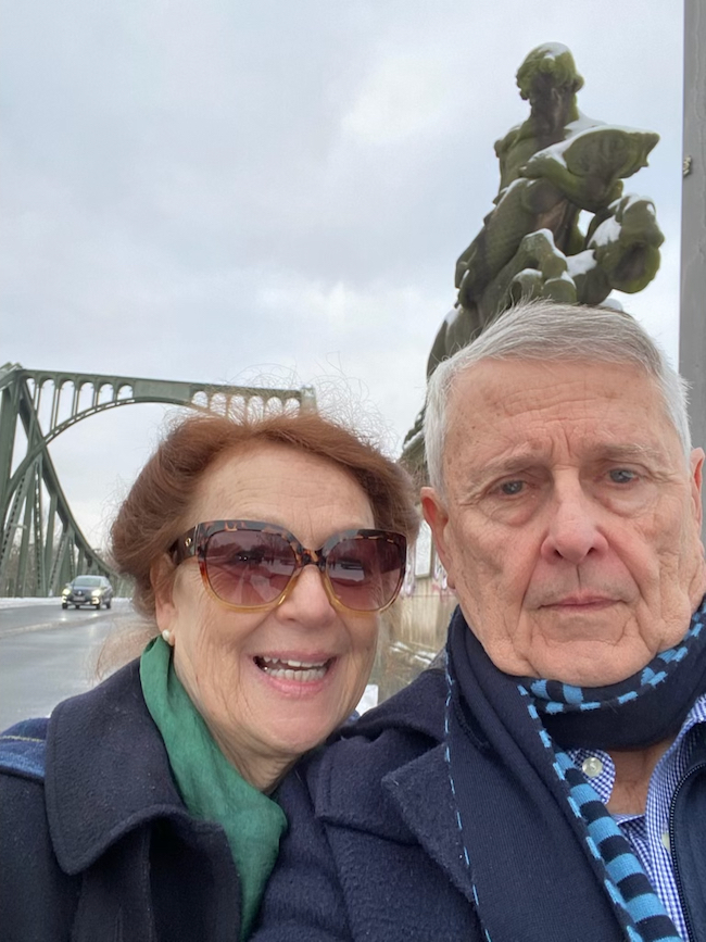 We had a lovely guide again, very good, very thorough, Lothar. We toured old neighborhoods in Berlin, on our way to the old corridor from the island of West Berlin towards the West, on our way to Sans Souci, the summer palace of King Fredrick II. Lothar shared with us being a young boy in Berlin, taking trips out to Italy in the summer, going through this corridor, and receiving terrible treatment at the hands of the East Germans. We had a wonderful surprise, a stop a the Glenicke Bridge, the old “Bridge of Spies” where Frances Gary Powers was exchanged for a Soviet Spy, each crossing the bridge to freedom. We got out of the bus and walked across.