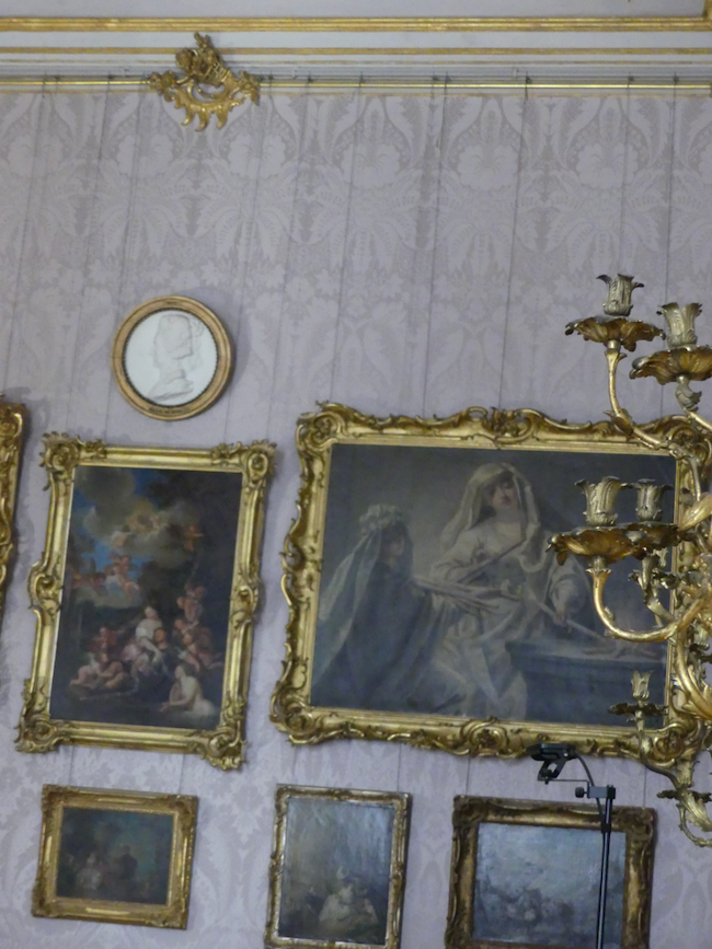 I lived in Germany off and on for many years. As I walked through this sumptuously decorated castle, truly exquisite, I couldn’t help but think how most of the poorest families in the Western World live better than the lords of old. Almost every house now has indoor plumbing and some kind of heat. Those beds, to me, look small, and lumpy. Frederick II who built this little escape hideaway lived a lonely and circumscribed life, with a manipulative, brutal father and heavy expectations on his shoulders. I think of how many people it took to maintain this palace, mostly for one man who entertained little. I think of the lives of those who served him, and wondered what they ate, how they slept at night – the tour did not include the back areas of the palace.