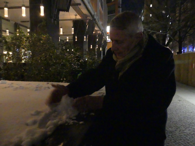 It is maybe a half-hour ride to our hotel, the Grand Hyatt, located on the edge of the old East Zone, and central to everything we want to see. We are so excited. We check in, clean up, organize and rest a little, and are ready to hit the streets. Just up the street is a small local Christmas Market, and a brewery with good traditional German food. It is snowing, but not messy snowing, just little flakes that drift and gather and never exceed a couple inches. It is slick. We have to be careful, but it is so much fun.