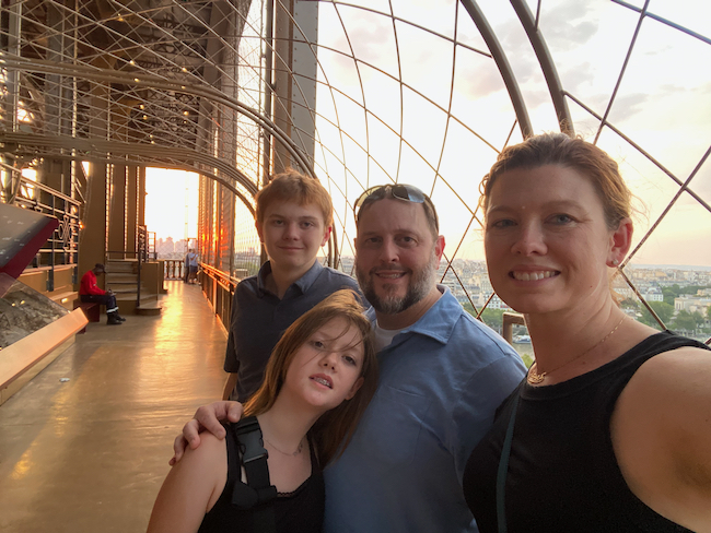 Just after dinner, our son’s family took off for the Eifel Tower to take one last stab at going up.