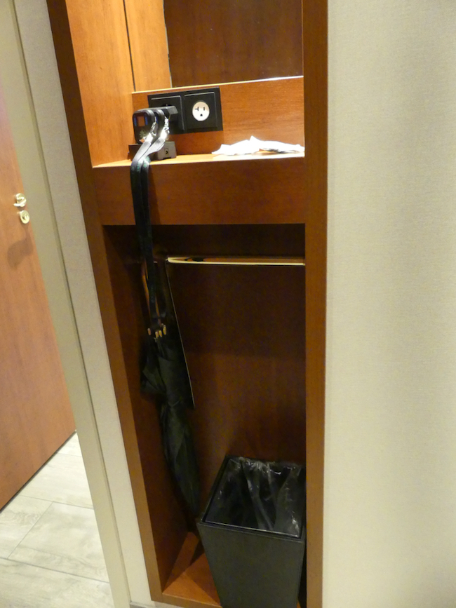 We had packed just enough to get us through the trip; we had so much more space than we needed. In this bathroom, every mirror has a cupboard behind it, and there are additional electrical sockets in the little cupboards. The shower is luxuriously spacious.