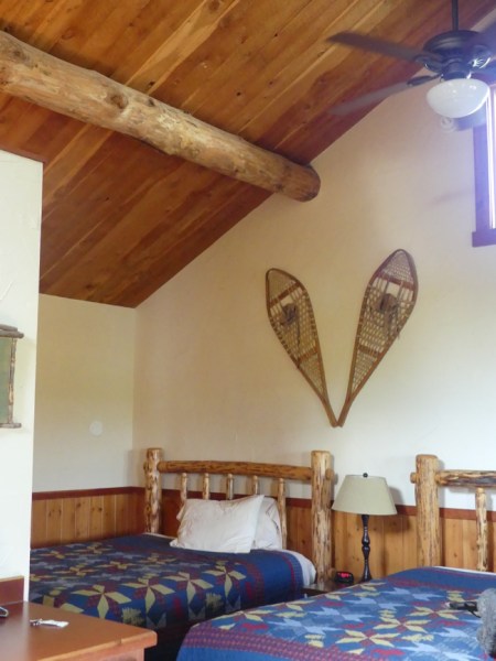 These are some of the nicest cabins I have ever seen. They feel spacious on the inside, and are beautifully done. You can see East Glacier Village and the train depot from our porch. And the mountains.