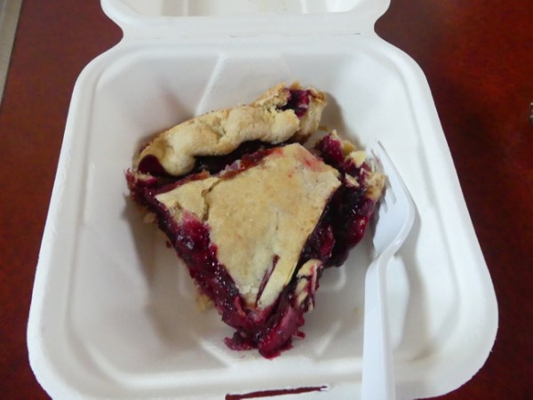 We go into East Glacier Village to pick up some milk for our cereal in the morning, and we see the Two Medicine Grill, which seems to have fresh pie. We can’t resist fresh pie.