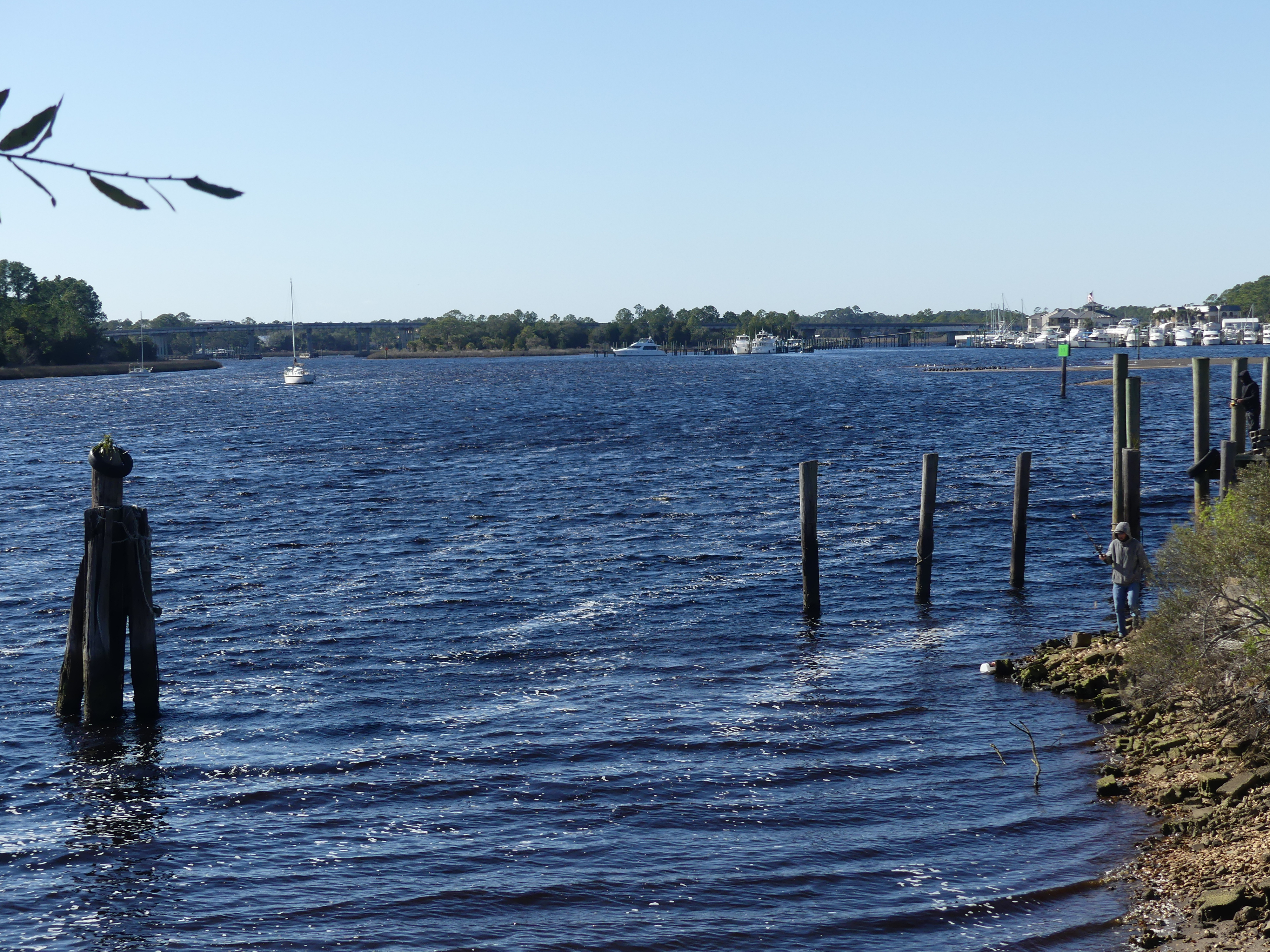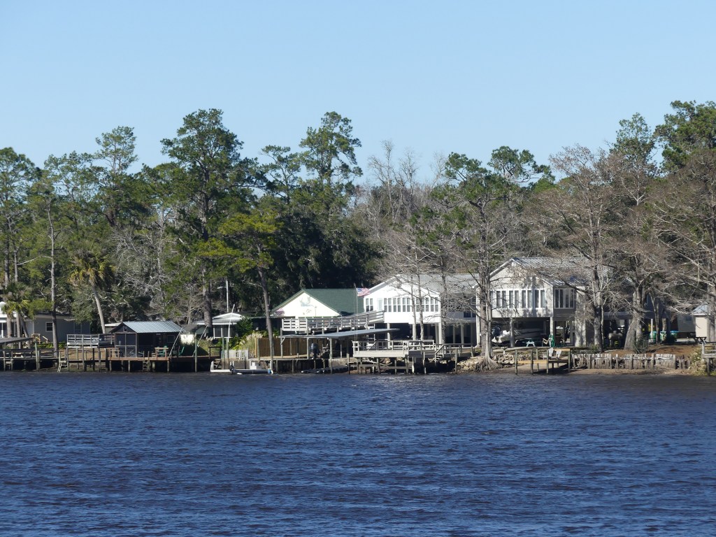 All along this route we see some serious money going in. Some is Florida people, building their dream home in a beautiful, if dangerous (hurricane) location. Others are people sick of the snow and ice and cold of the north, building their more modest retirement homes or sheltering in trailer (caravan) villages. This very pretty little village is Carabelle, just east of Tate’s Hell State forest. (I just love that name, LOL)