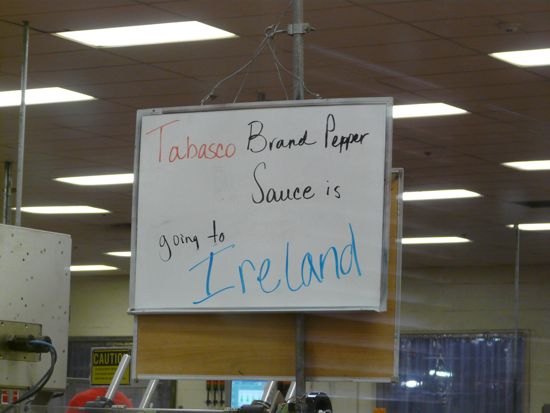 After the movie, we get to tour alongside the factory and go into the museum. Very cool. Thousands and thousands of tobasco bottles being filled, and each day they post which country(ies) they are sending this batch to. Today is Ireland.