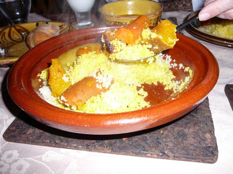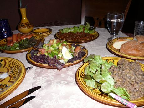 We really liked it that they played Moroccan music, that the primary wait staff were Moroccan, and that the food was really, REALLY good. Each starter had an individual and lightly spiced flavor, the couscous was rich and light, and the lamb tajine with plums was tender, sweet and heavenly. The tea was hot and our etched glass cups frequently refilled, and an irresistable plate of sweets arrived just when we thought none of us could eat another bite.