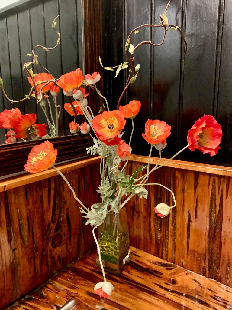 Once we had ordered, we all went to wash hands. Washing hands was a treat! The bathroom was actually very clean, and granddaughter pointed out the flower arrangement.