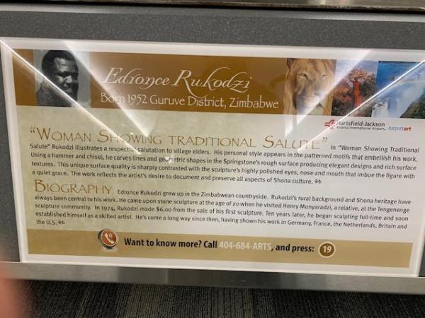 The Atlanta airport often has wonderful art exhibits in the underground walkways between different wings of the airport. This time – oh WOW, it is a Zimbabwean exhibit of stone sculptors.