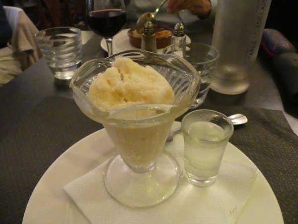 For me, this was the truly wonderful part. One of the desserts was pear ice cream. When it came, with the clear cold liquid in the tiny glass accompanying it, I knew it had to be a pear liquor. AdventureMan asked if I was going to drink it. I am diabetic. I don’t drink a lot of alcohol anymore.