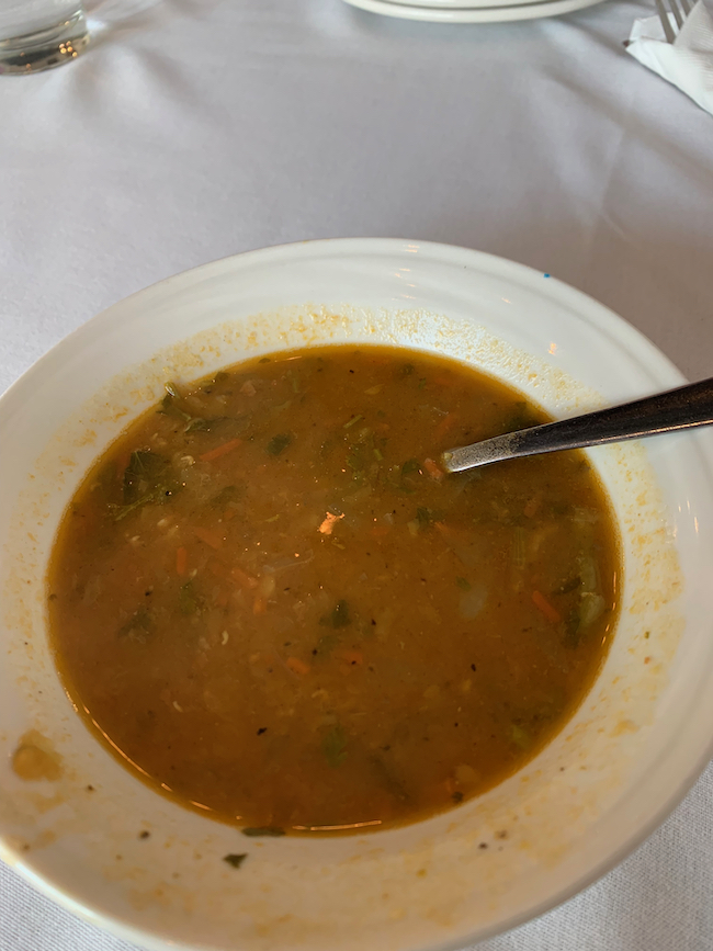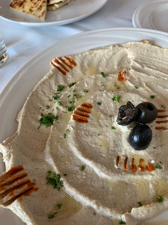 We started with the lentil soup, and shared a hummus. AdventureMan chose a felafel sandwich and I chose a lamb kebab.